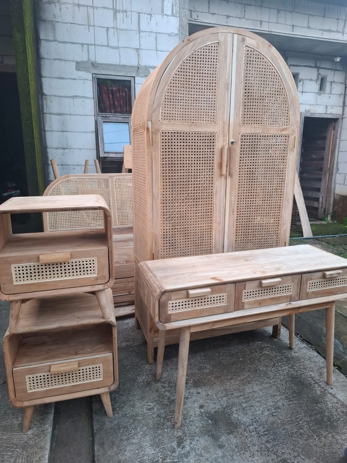 Paket Lemari Nakas Rotan - Perpaduan sempurna antara seni tradisional dan sentuhan modern. Setiap furnitur dirancang dengan ketelitian tinggi, menghadirkan estetika yang elegan dan kualitas yang tak tertandingi dari pengrajin terbaik Jepara.